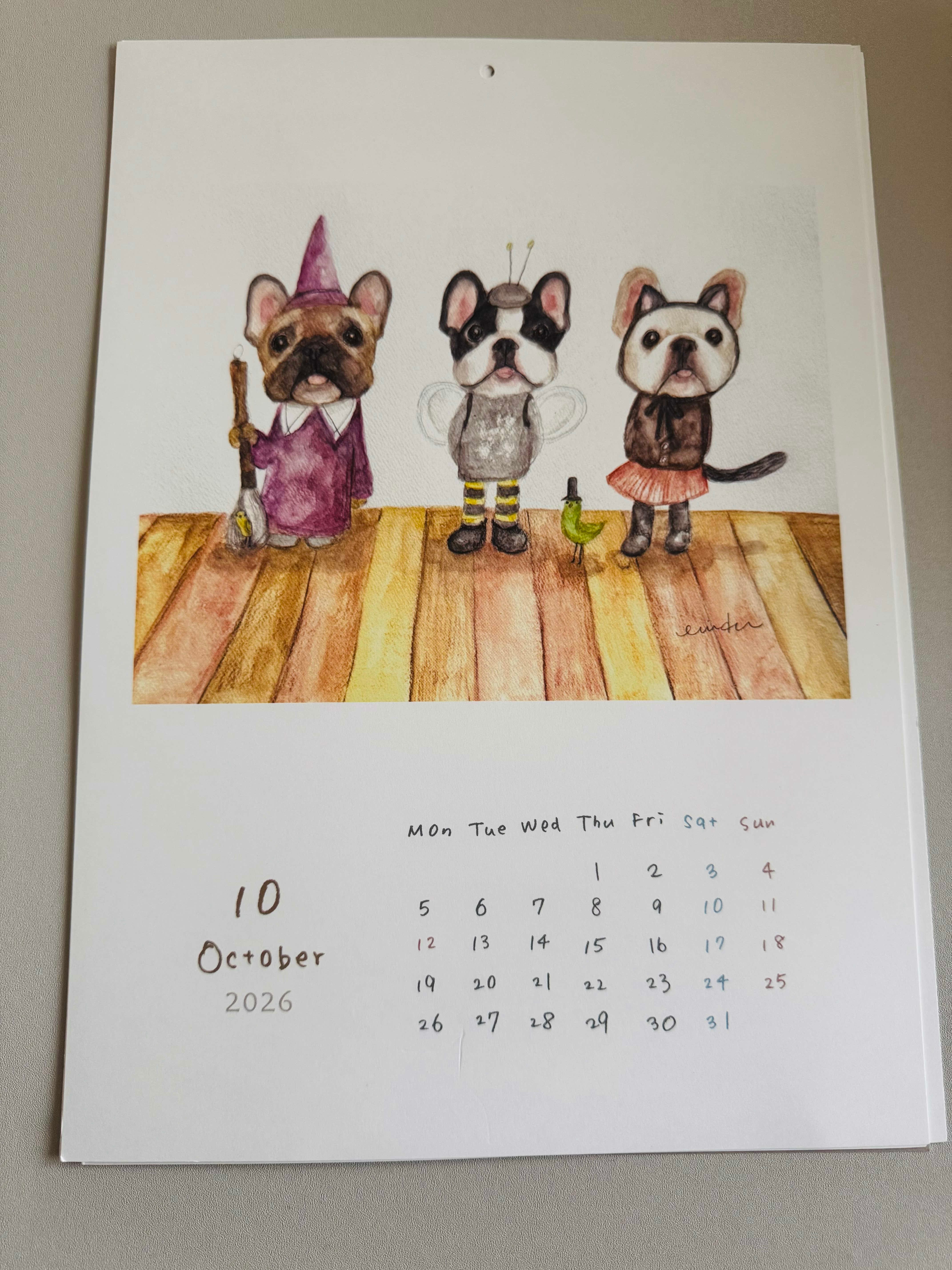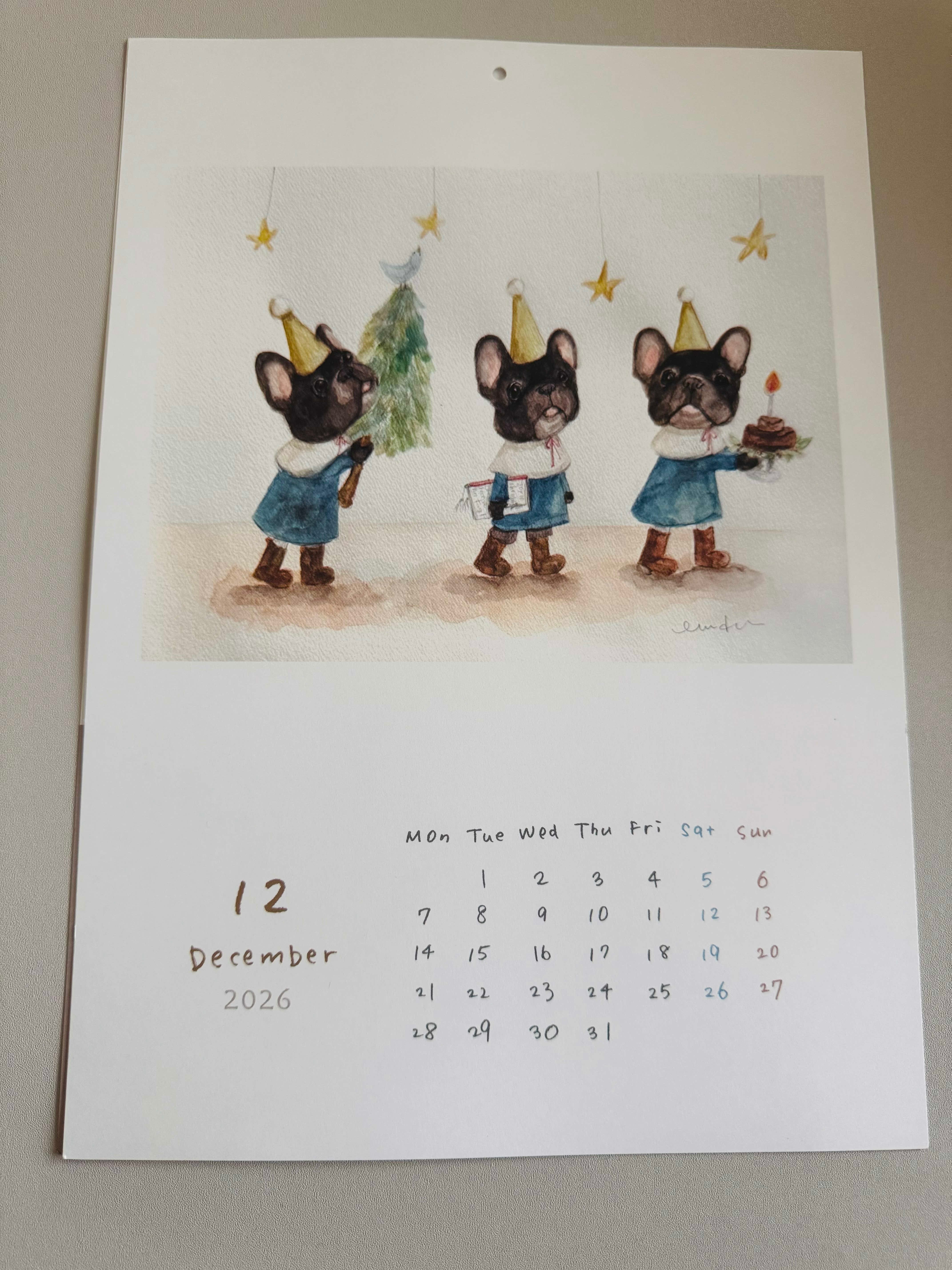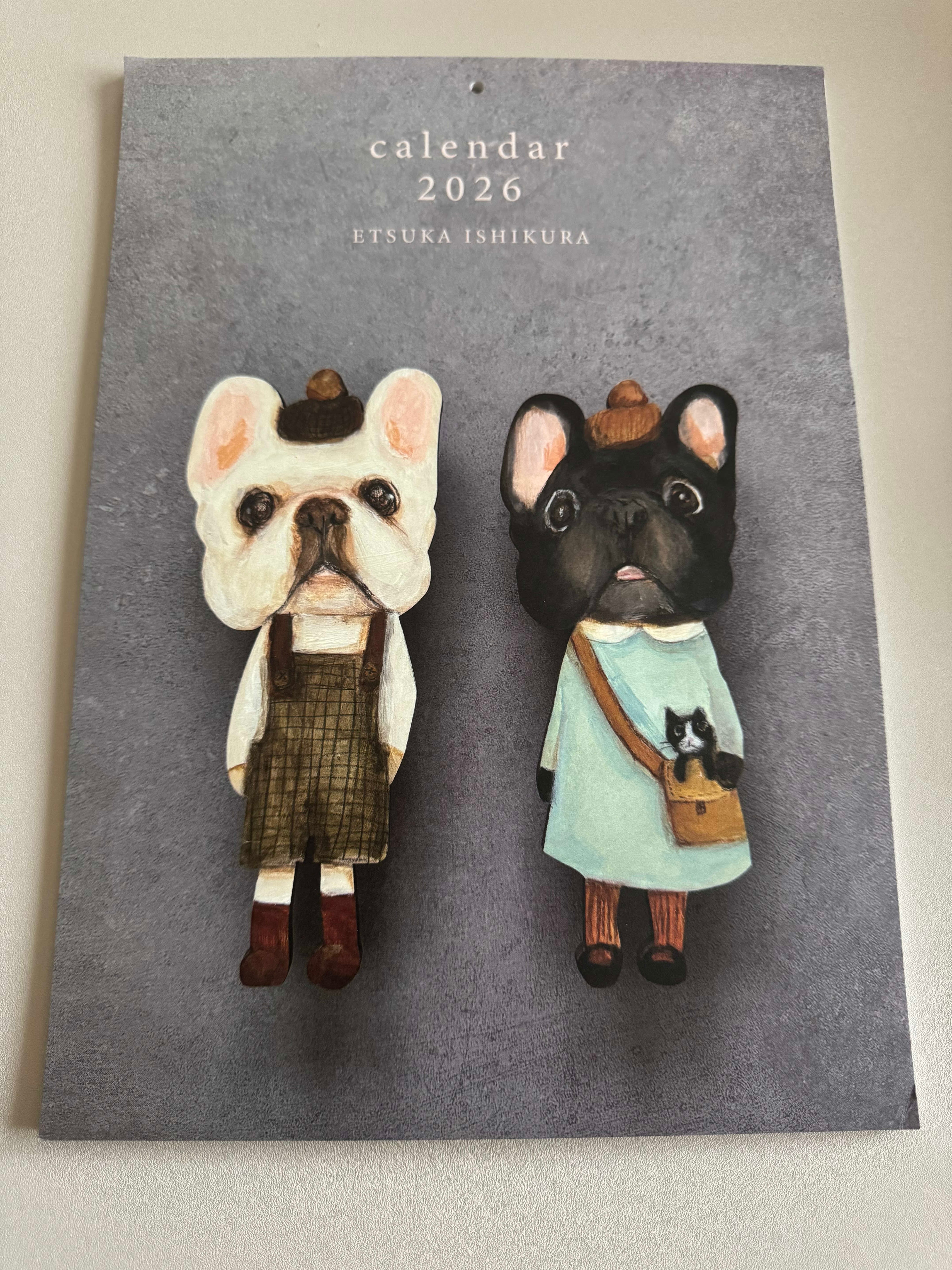 カレンダーに描かれたフレンチブルドッグさんたちの表情が