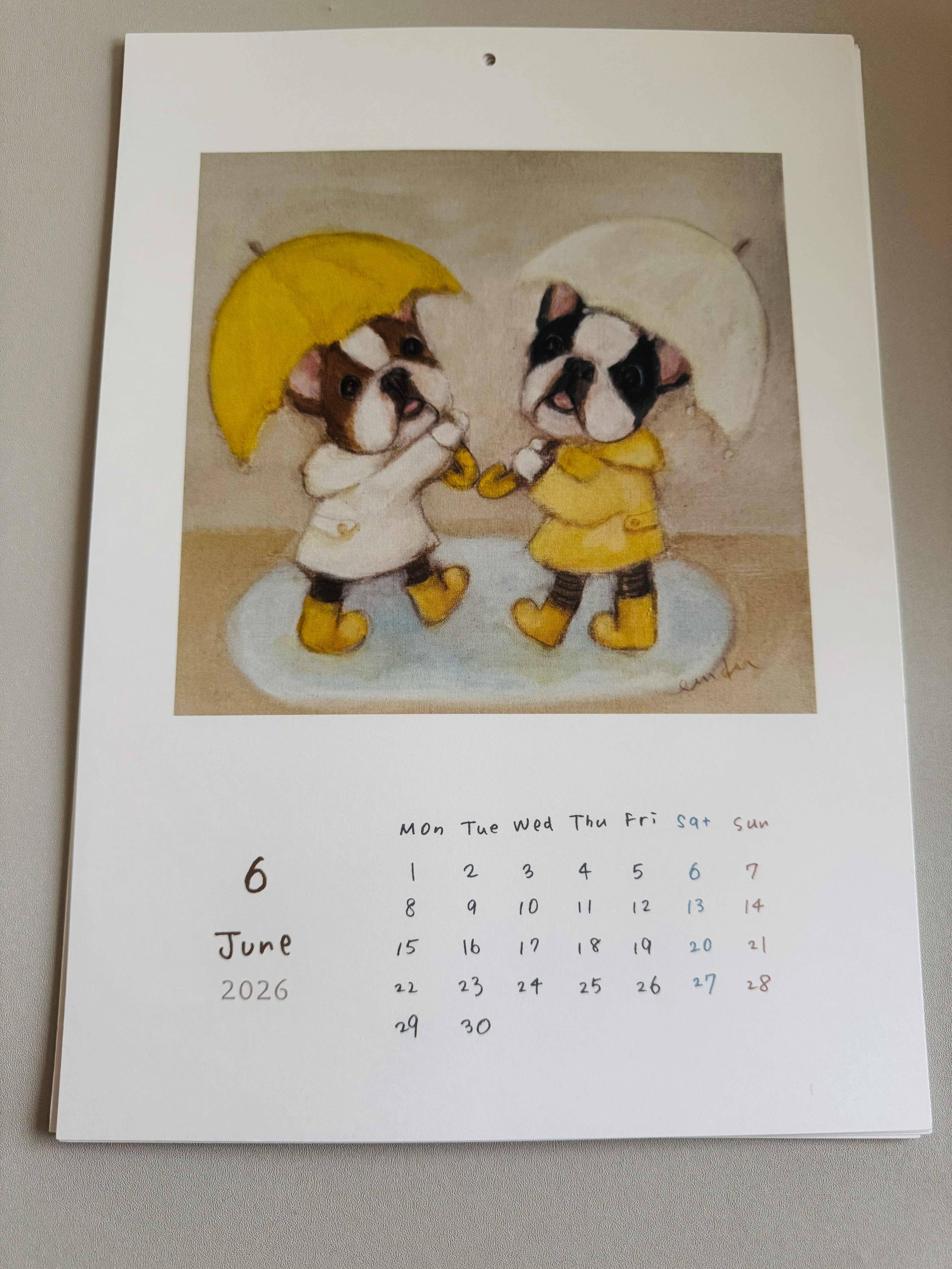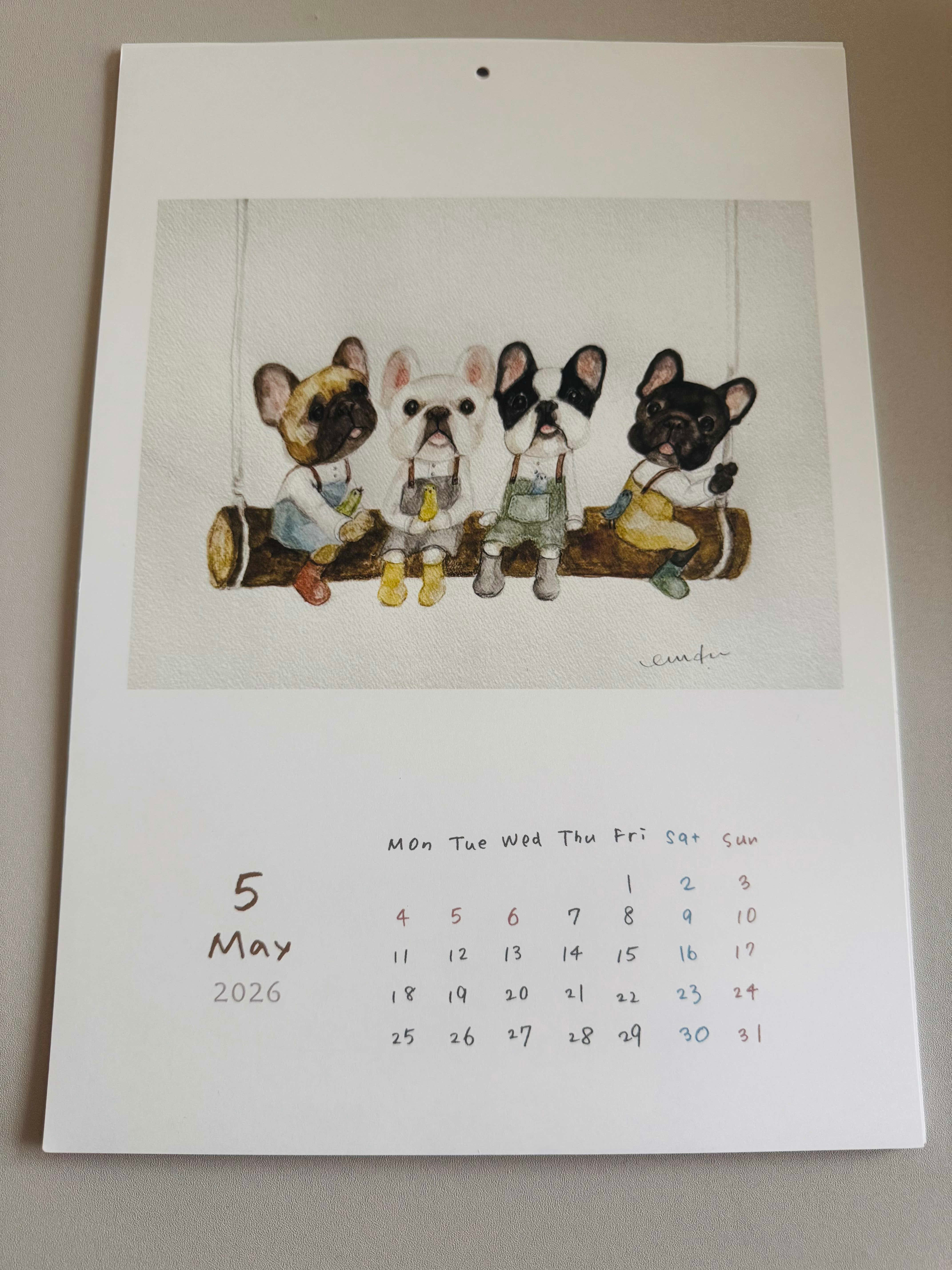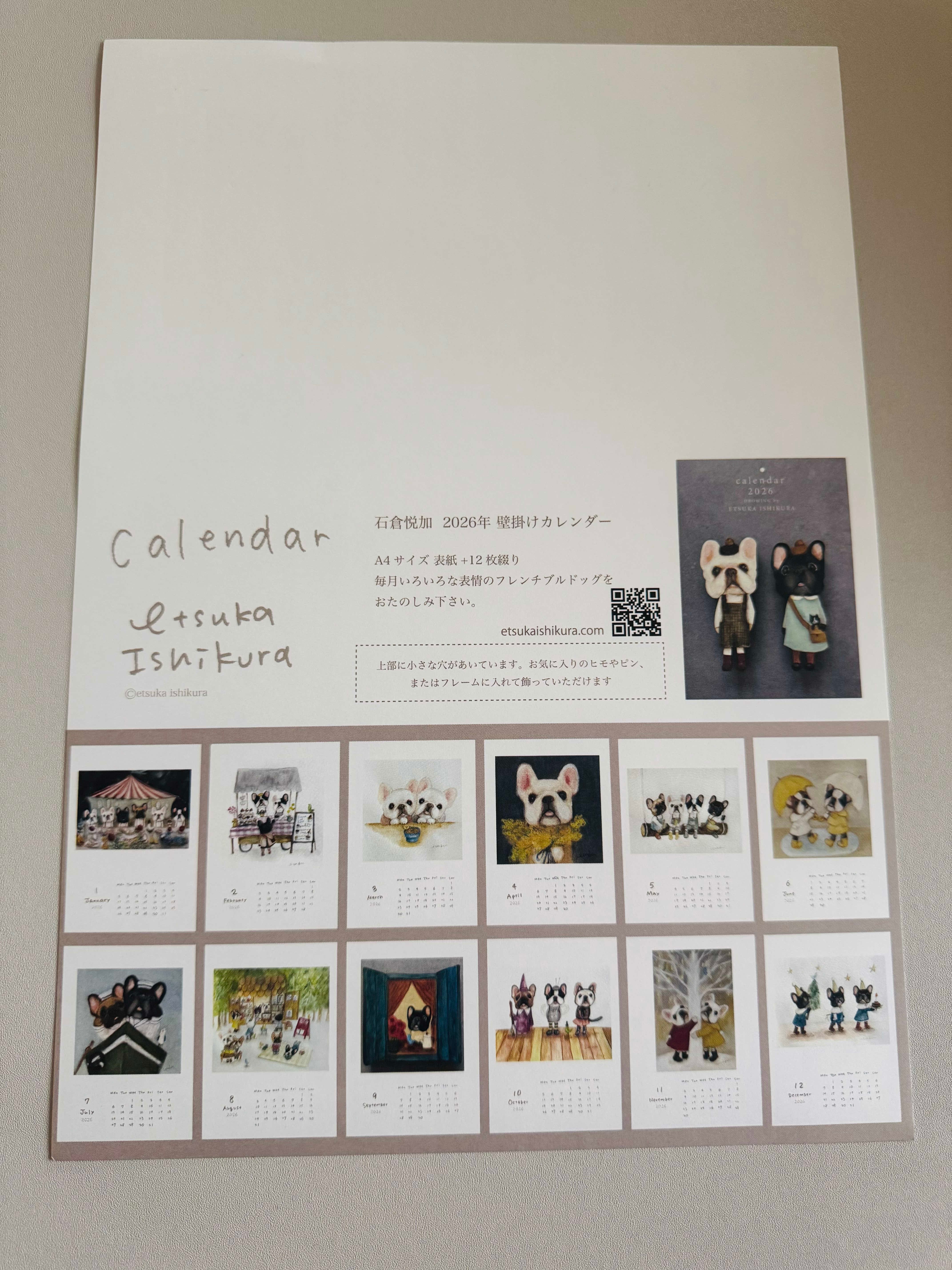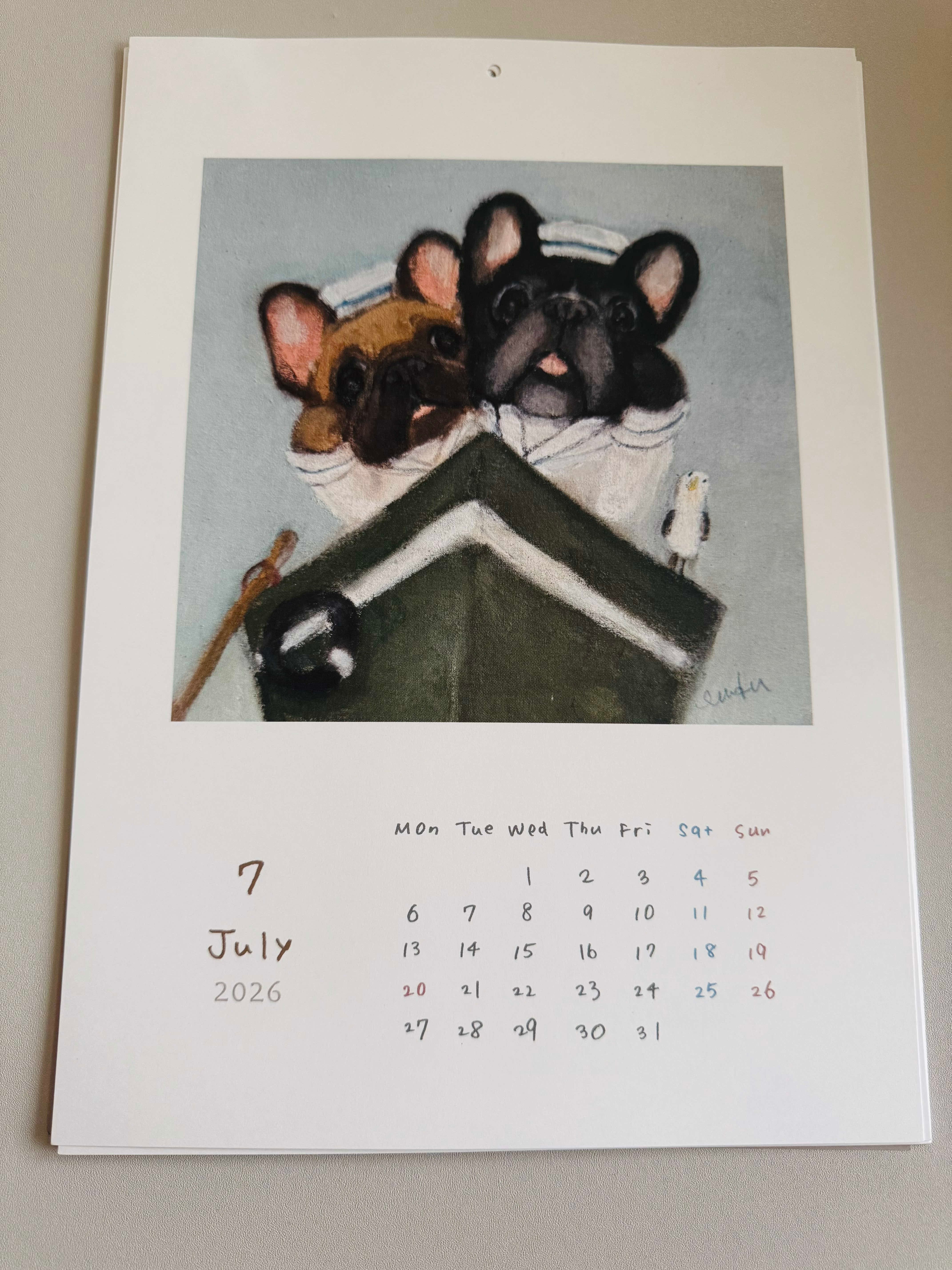 カレンダーに描かれたフレンチブルドッグさんたちの表情が